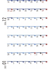月毎に区切れることなく、365日、日付がつながったカレンダーです。
