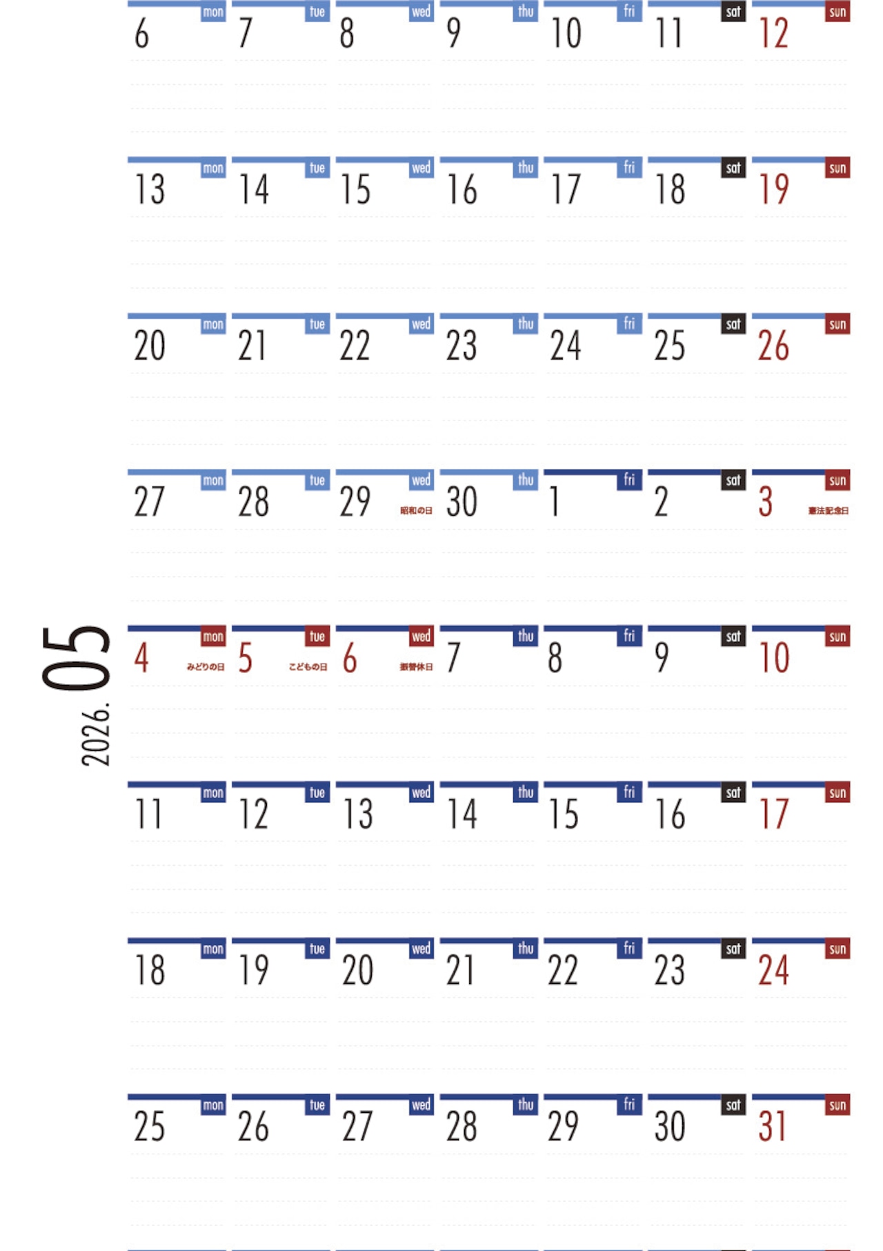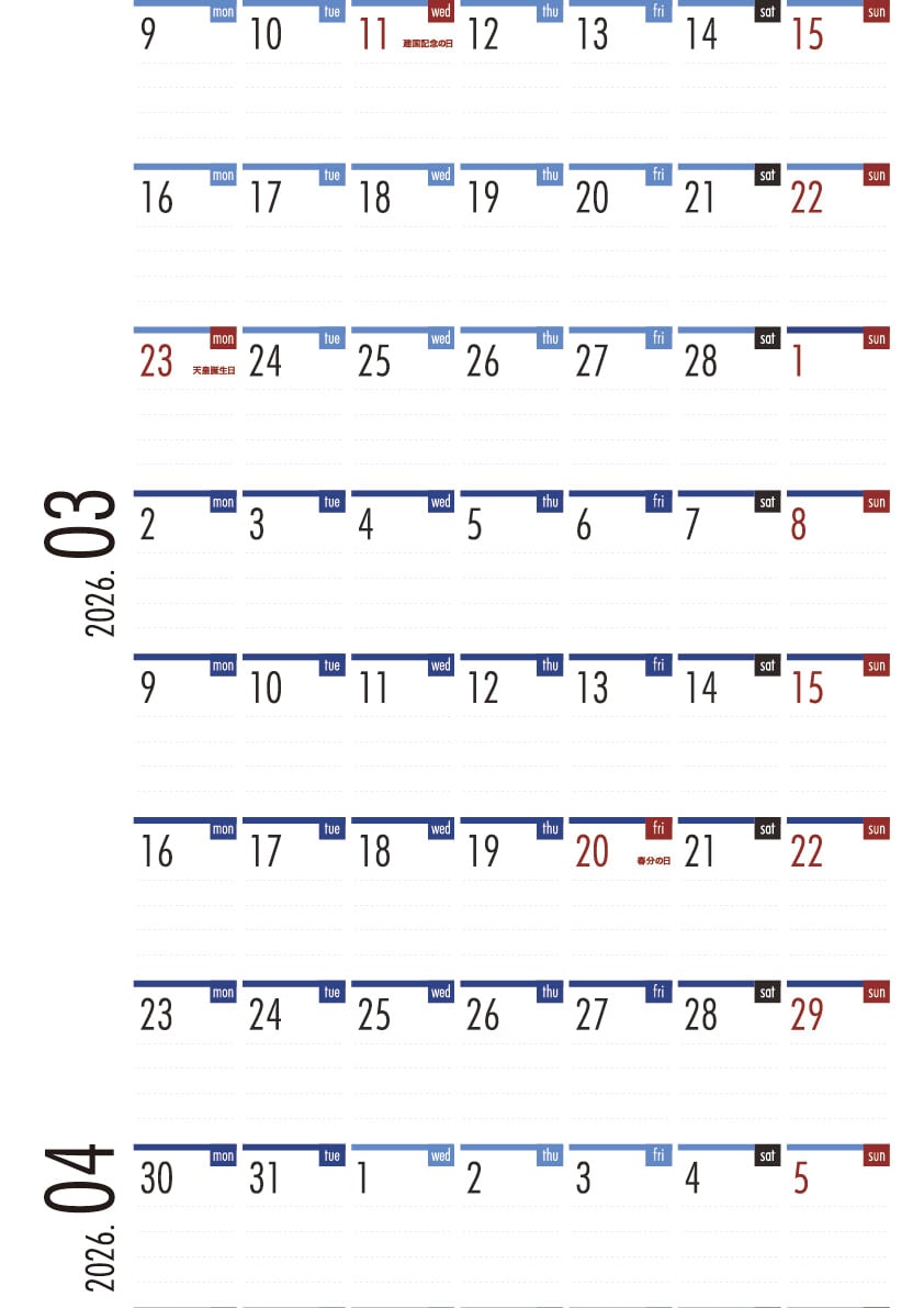 2026年カレンダー
