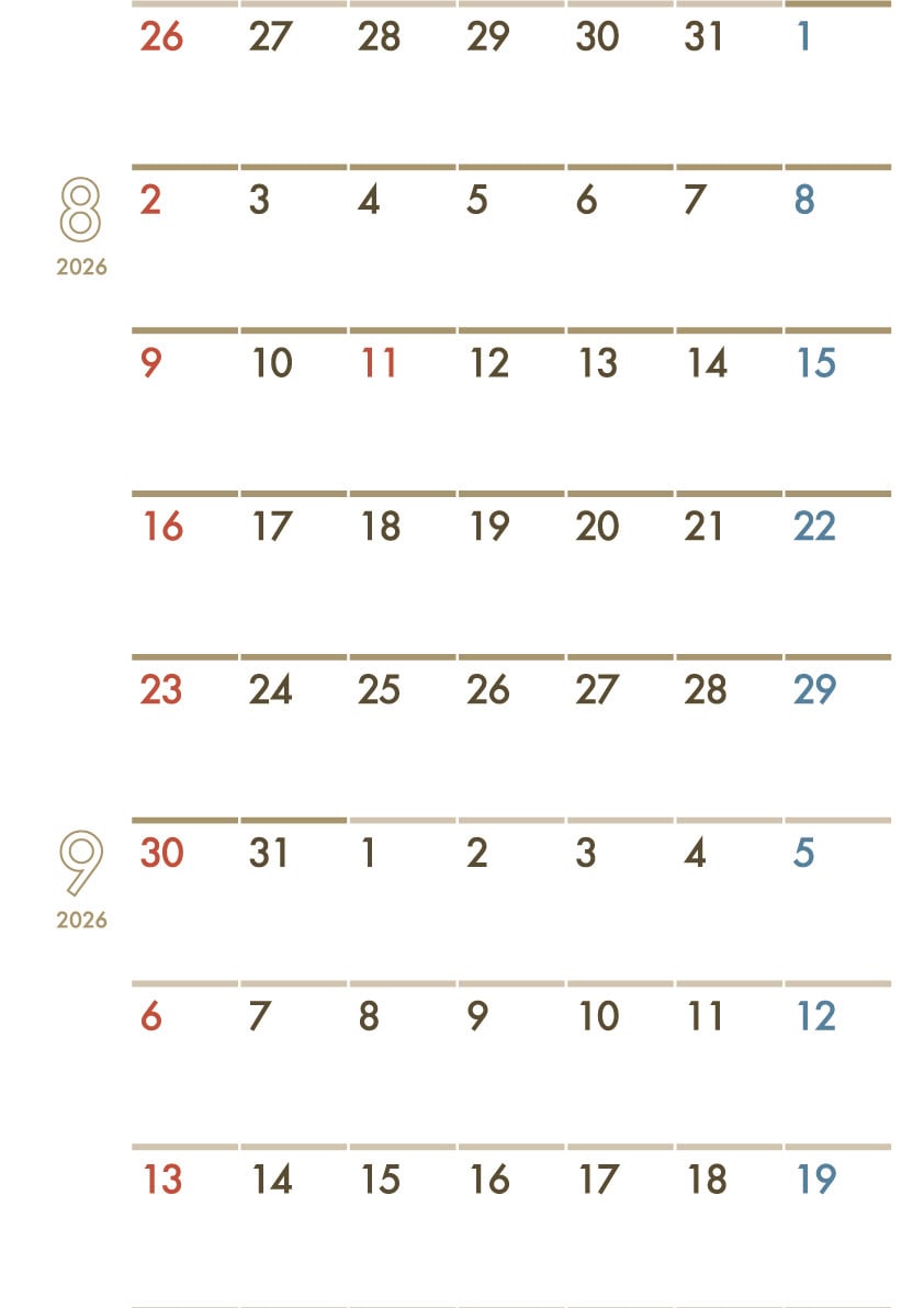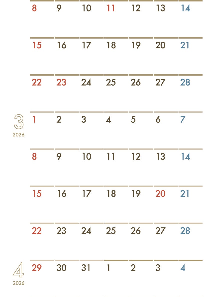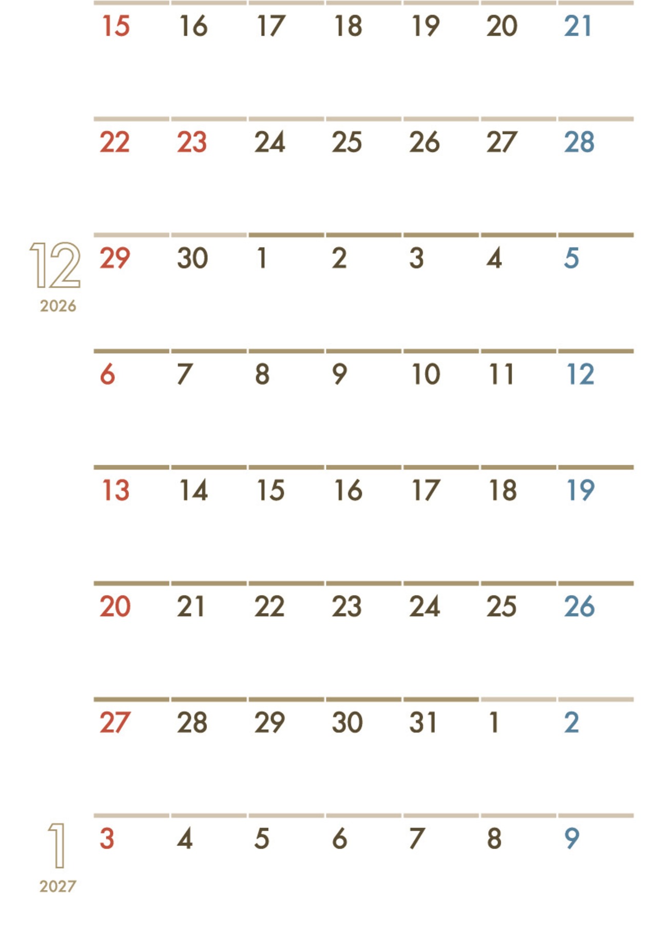 月毎に区切れることなく、365日、日付がつながったカレンダーです。
