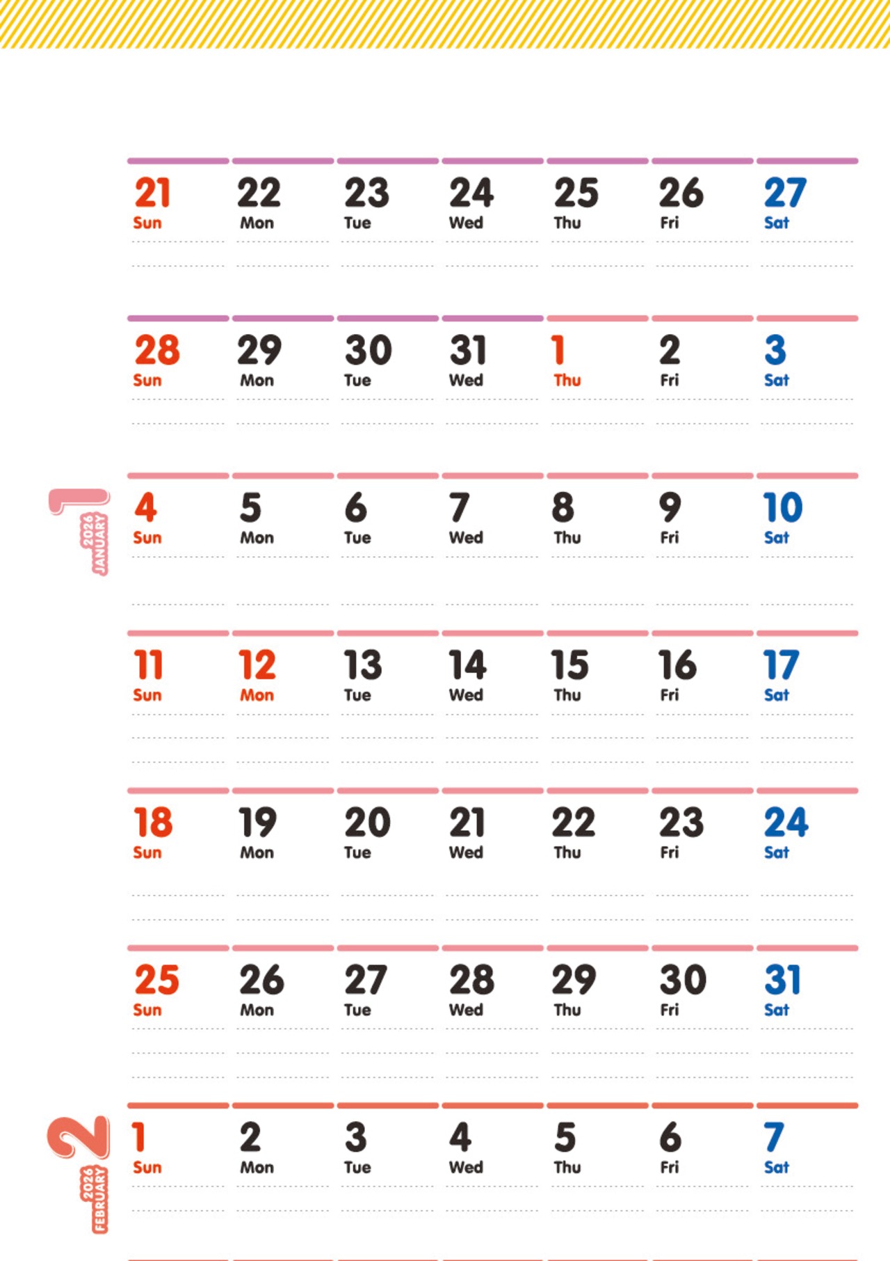 ポップデザイン【 日曜始まり 】