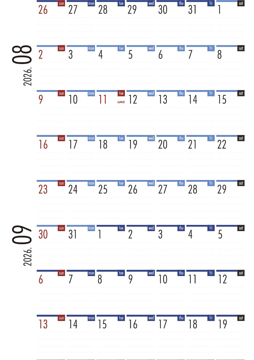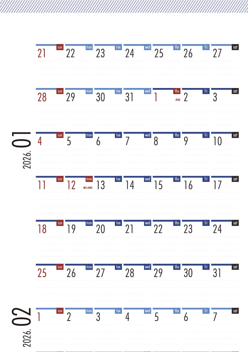 月毎に区切れることなく、365日、日付がつながったカレンダーです。