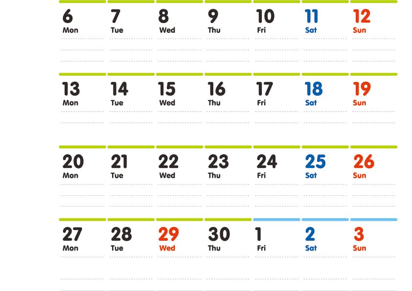 月毎に区切れることなく、365日、日付がつながったカレンダーです。